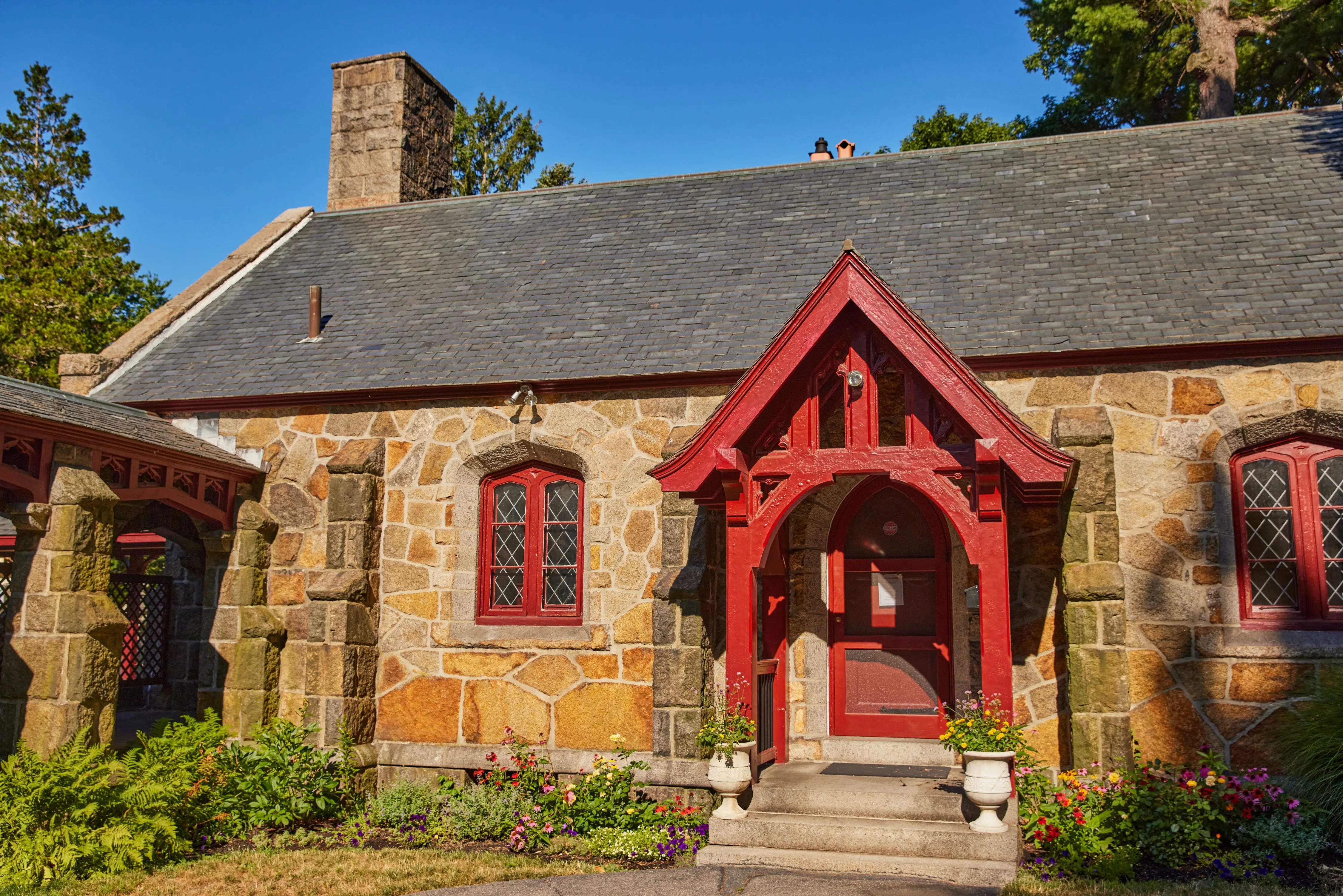 The beautifully restored cottage is a wonderful example of Gothic Revival architecture. It not only serves as a source of rental income for the Cemetery, but is also a lovely and unique feature that greets all visitors of Harmony Grove.